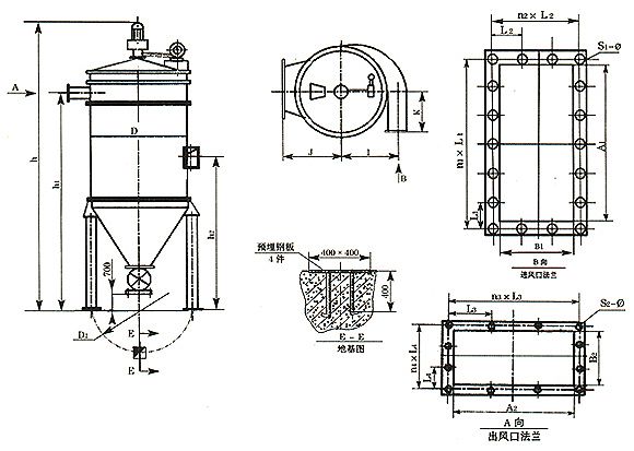ZCⅢ型回轉(zhuǎn)反吹風(fēng)扁袋除塵器尺寸表